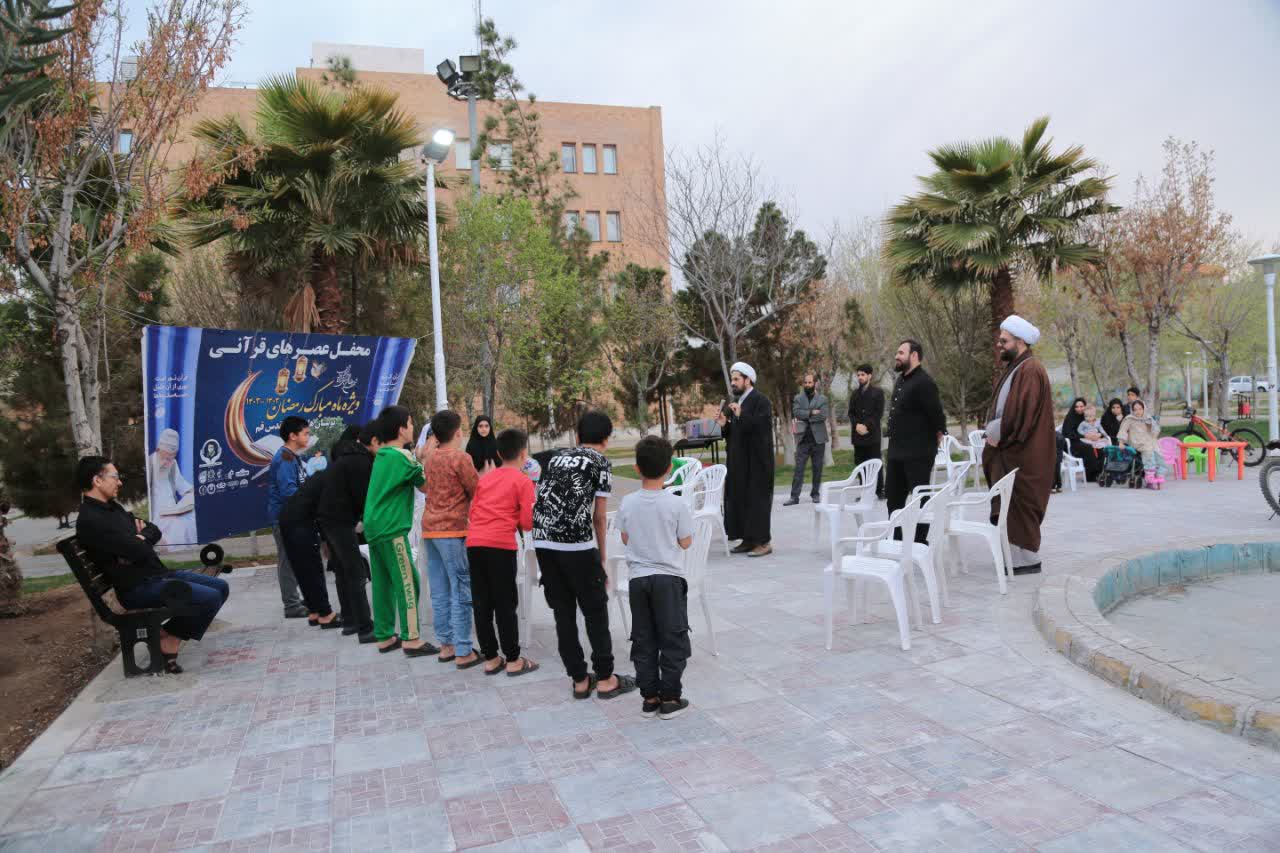 همزمان با روزهای پرفضیلت ماه مبارک رمضان، در پنجمین سال پیاپی، به همّت گروه تبلیغی جهادی شهید محمدرضا شفیعی، محافل جزءخوانی قرآن کریم با حضور برادران و خواهران روزهدار، همراه با اجرای ویژه برنامه برای کودکان و نوجوانان، در بوستانهای قم برگزار شده است که تا پایان این ماه عزیز، ادامه دارد.